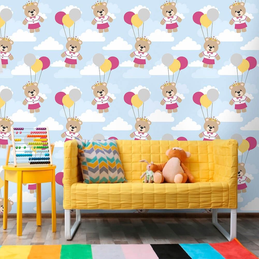 O Papel de Parede Ursinhos Juju é fabricado em adesivo vinil fosco 3M, autocolante e com excelente qualidade de impressão. Não precisando de cola.