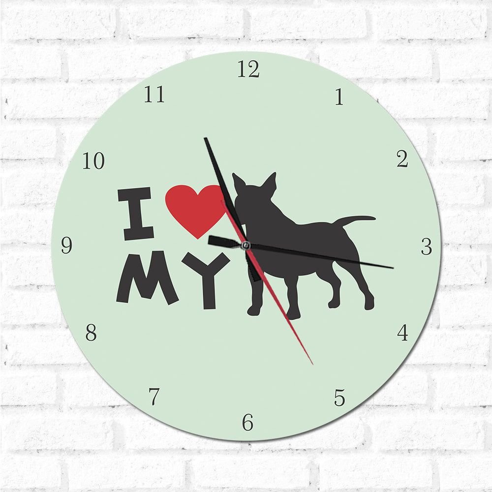 O Relógio Decorativo I love My Bull Terrie é uma ótima opção para decorar sua casa, além de ser um item funcional, é também um item decorativo. E pode ser colocado em qualquer ambiente.