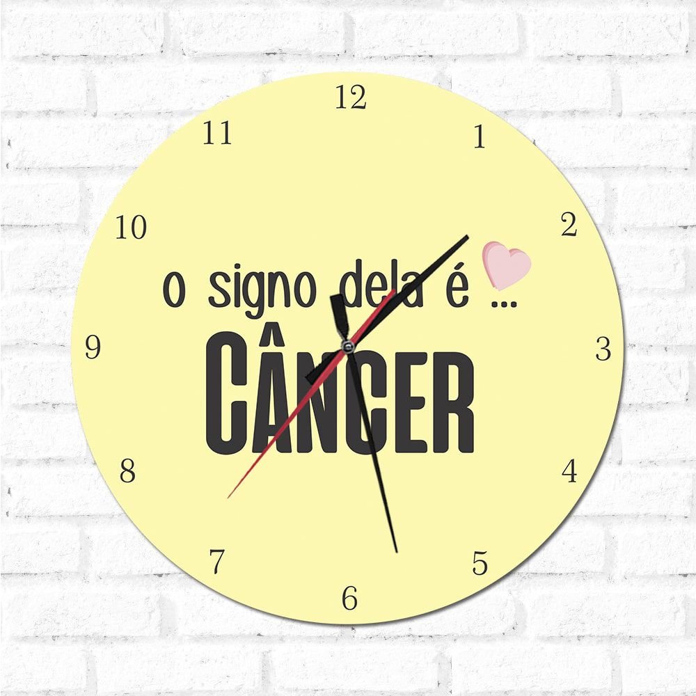 O Relógio Decorativo O Signo dela é Câncer é uma ótima opção para decorar sua casa, além de ser um item funcional, é também um item decorativo. E pode ser colocado em qualquer ambiente.