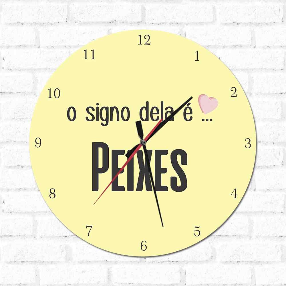 O Relógio Decorativo O Signo dela é Peixes é uma ótima opção para decorar sua casa, além de ser um item funcional, é também um item decorativo. E pode ser colocado em qualquer ambiente.
